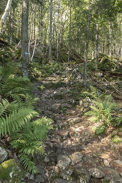 Her ser vi den gamle seterveien ved Ringikastet. Veien er bratt og steinete. Sett fra øst. Bildet er tatt i 2020. Foto: Knut Erik Skarning
