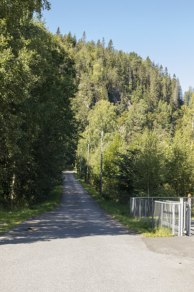 Her gikk den gamle seterveien fra Kattås. Den nedre bygningen for Kattås vannbehandlingsanlegg ligger til høyre, utenfor bildet. Husmannsplassen Kattåsbråtan lå til høyre for veien omtrent midt på veistrekningen vi ser.