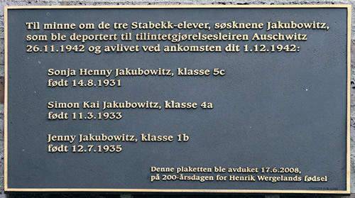 Det er laget en video om en jødisk elev, Jenny Jakubowitz, som ble arrestert av tyskerne i 1942, og som aldri kom tilbake. Se også plaketten på bilde ovenfor.